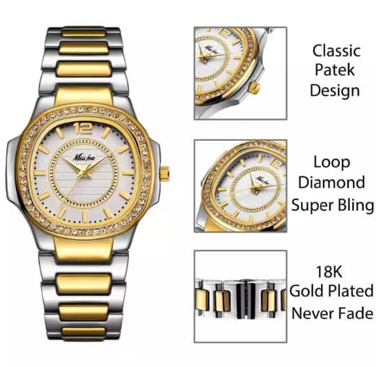 Treat yourself to this stunning beautiful high grade wrist watch plated with 18k Real Gold making it long lasting and non fading. It is also 30m life water resistant.